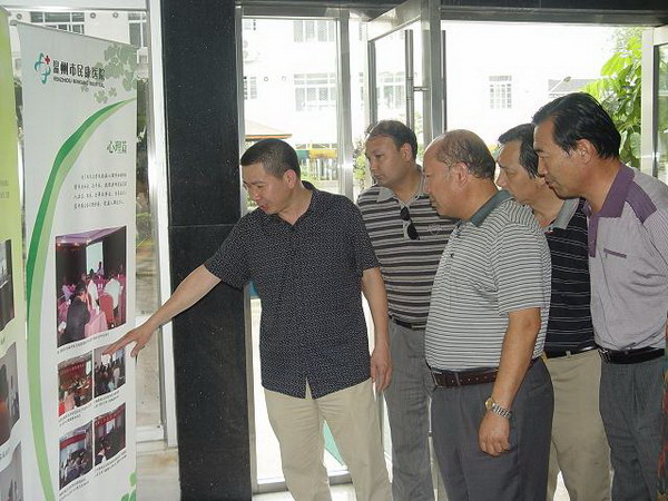 吐魯洪.馬木提局長一行人在我院領(lǐng)導(dǎo)的陪同下參觀了醫(yī)院的住院大樓、老年康復(fù)大樓、康復(fù)中心。在隨后的交流會(huì)上,我院林崇光副院長等院領(lǐng)導(dǎo)對(duì)遠(yuǎn)道而來的客人表示了熱烈的歡迎,并向他們介紹了醫(yī)院的概況以及近年來醫(yī)院工作取得一些成績和好的做法,詳細(xì)介紹了醫(yī)院在收治社會(huì)流浪精神病人、救治醫(yī)中醫(yī)療貧困精神病人、社區(qū)精神疾病防治等方面工作。聽取情況介紹后,吐魯洪.馬木提局長一行對(duì)我院先進(jìn)的管理模式、流暢的救治機(jī)制給予了相當(dāng)高的評(píng)價(jià)。該地區(qū)下屬的精神病院院長艾瓦爾就精神病醫(yī)院的發(fā)展與我院領(lǐng)導(dǎo)積極交流了看法,交換了意見,互謀發(fā)展。