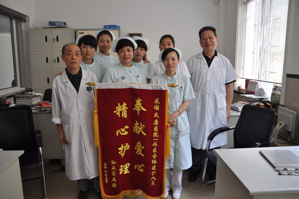 5月17日上午,病人孫正的家屬送來(lái)一面錦旗,錦旗上的一句“精心護(hù)理,奉獻(xiàn)愛(ài)心”表達(dá)了病人家屬對(duì)我院一病區(qū)全體醫(yī)護(hù)人員的感激之情。