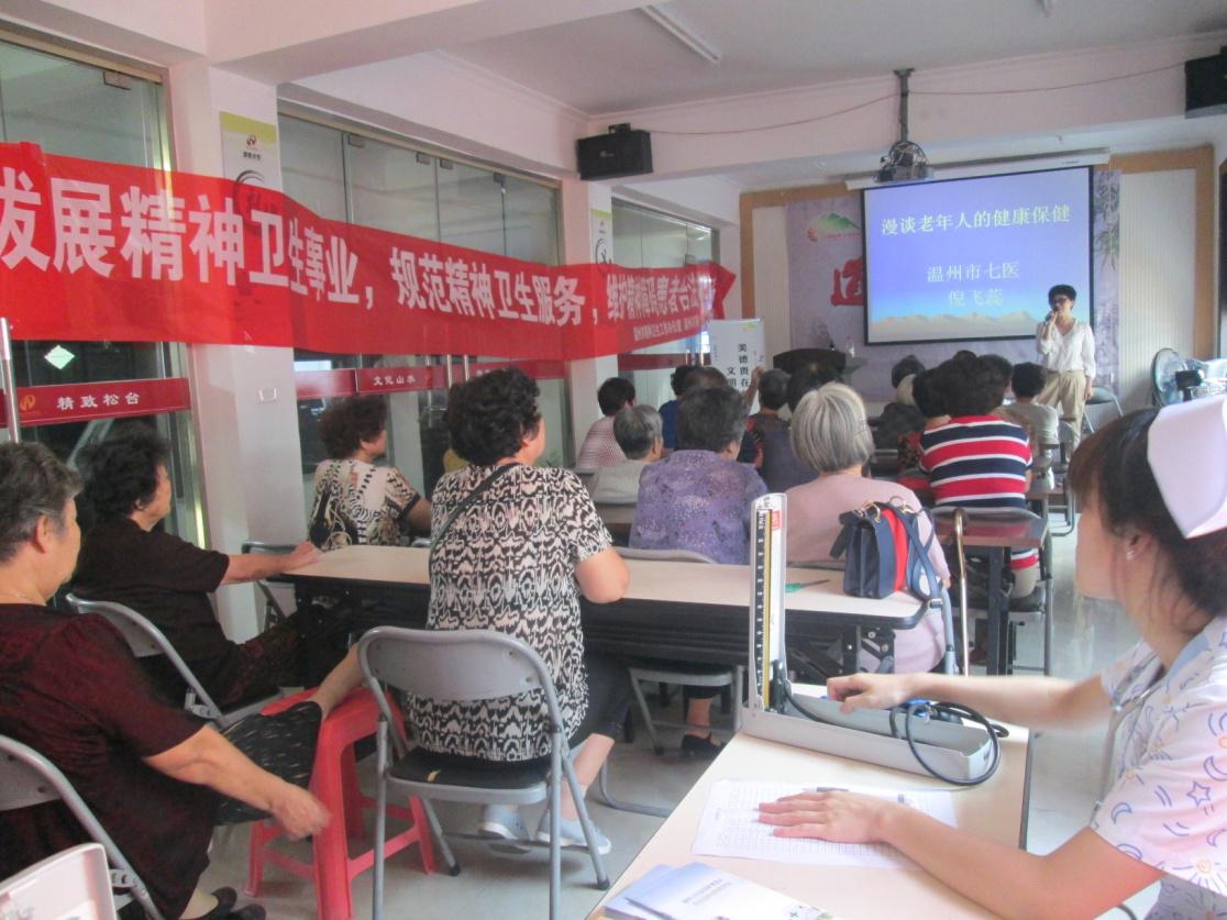 ???? 倪醫(yī)生在講座過程中重點針對老年人常見?。焊哐獕骸⑻悄虿∨c老年癡呆進行了深入講解,告知老人們要保持健康生活,增強保健意識的同時,更要保持身心平衡。同時我院醫(yī)護人員為老人進行血壓測量。并發(fā)放老年精神健康相關(guān)的各種科普讀本近200冊。
