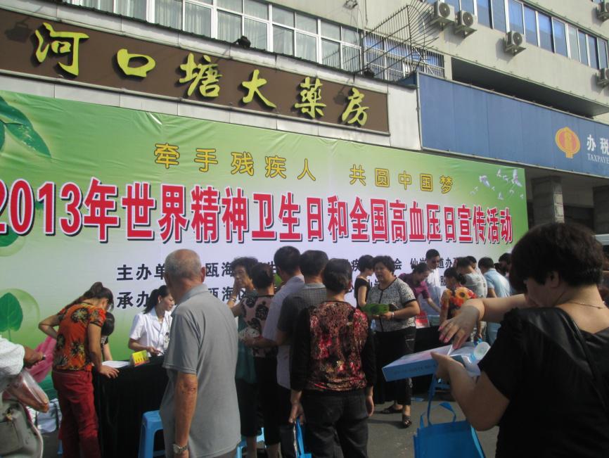 ??????? 10月10日---世界精神衛(wèi)生日,我院聯(lián)合甌海區(qū)衛(wèi)生局、疾病預(yù)防控制中心及仙巖街道辦在仙巖街道廣場開展宣傳活動,向社會大眾宣傳精神衛(wèi)生法及精神衛(wèi)生相關(guān)知識。