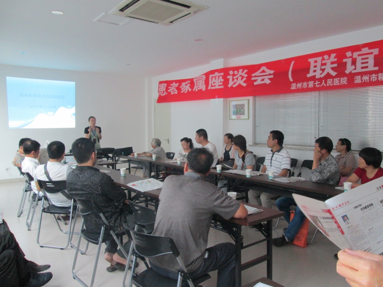????? 座談會中,我院副主任護師張崇麗首先就精神衛(wèi)生法中關(guān)于家屬的責(zé)任和患者享有的權(quán)利進行了解釋宣傳。同時,結(jié)合家屬需要就患者的家庭康復(fù)進行了深入淺出的講解。她指出家庭康復(fù)是患者回歸家庭和社會的重要環(huán)節(jié)。講座內(nèi)容中關(guān)于患者疾病復(fù)發(fā)征兆、與患者的溝通技巧和如何與患者共同制定康復(fù)計劃等內(nèi)容讓患者家屬受益匪淺。