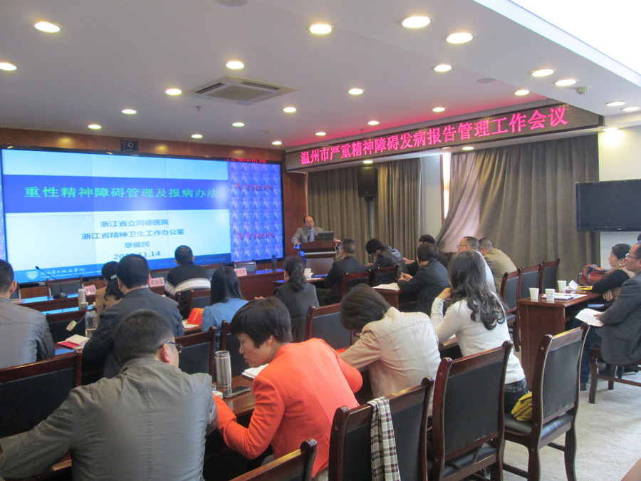 ????????為進(jìn)一步規(guī)范精神衛(wèi)生服務(wù),貫徹落實(shí)國(guó)家衛(wèi)生計(jì)生委印發(fā)的《嚴(yán)重精神障礙發(fā)病報(bào)告管理辦法的通知》、《浙江省省嚴(yán)重精神障礙發(fā)病報(bào)告與信息管理實(shí)施意見(jiàn)(試行)通知》文件精神,11月14日,我市精衛(wèi)辦在疾控中心大樓會(huì)議室召開(kāi)精神障礙患者信息報(bào)告管理工作會(huì)議。各區(qū)(縣、市)衛(wèi)生局疾控監(jiān)督科負(fù)責(zé)人、精衛(wèi)辦工作人員、各級(jí)各類(lèi)有精神障礙診療資質(zhì)的精神衛(wèi)生專(zhuān)科、綜合醫(yī)療單位負(fù)責(zé)人約60多人參加會(huì)議。省衛(wèi)生廳疾控監(jiān)督處副處級(jí)調(diào)研員高露露、省精衛(wèi)辦副主任章健民出席培訓(xùn)會(huì)議。