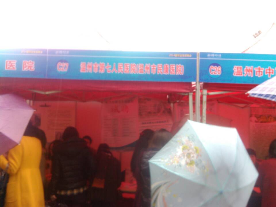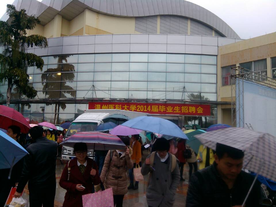 38日,溫州醫(yī)科大學(xué)2014年畢業(yè)生招聘會在溫州大學(xué)城如期開幕,來自省內(nèi)各大高校的醫(yī)學(xué)類畢業(yè)生紛紛匯集到了這座美麗的大學(xué)城。天公不作美,凜冽的寒風(fēng)和冰冷的雨水帶來陣陣寒意,但大雨和低溫卻擋不住用人單位和畢業(yè)生們的熱情,招聘會現(xiàn)場人頭攢動,人氣高漲。