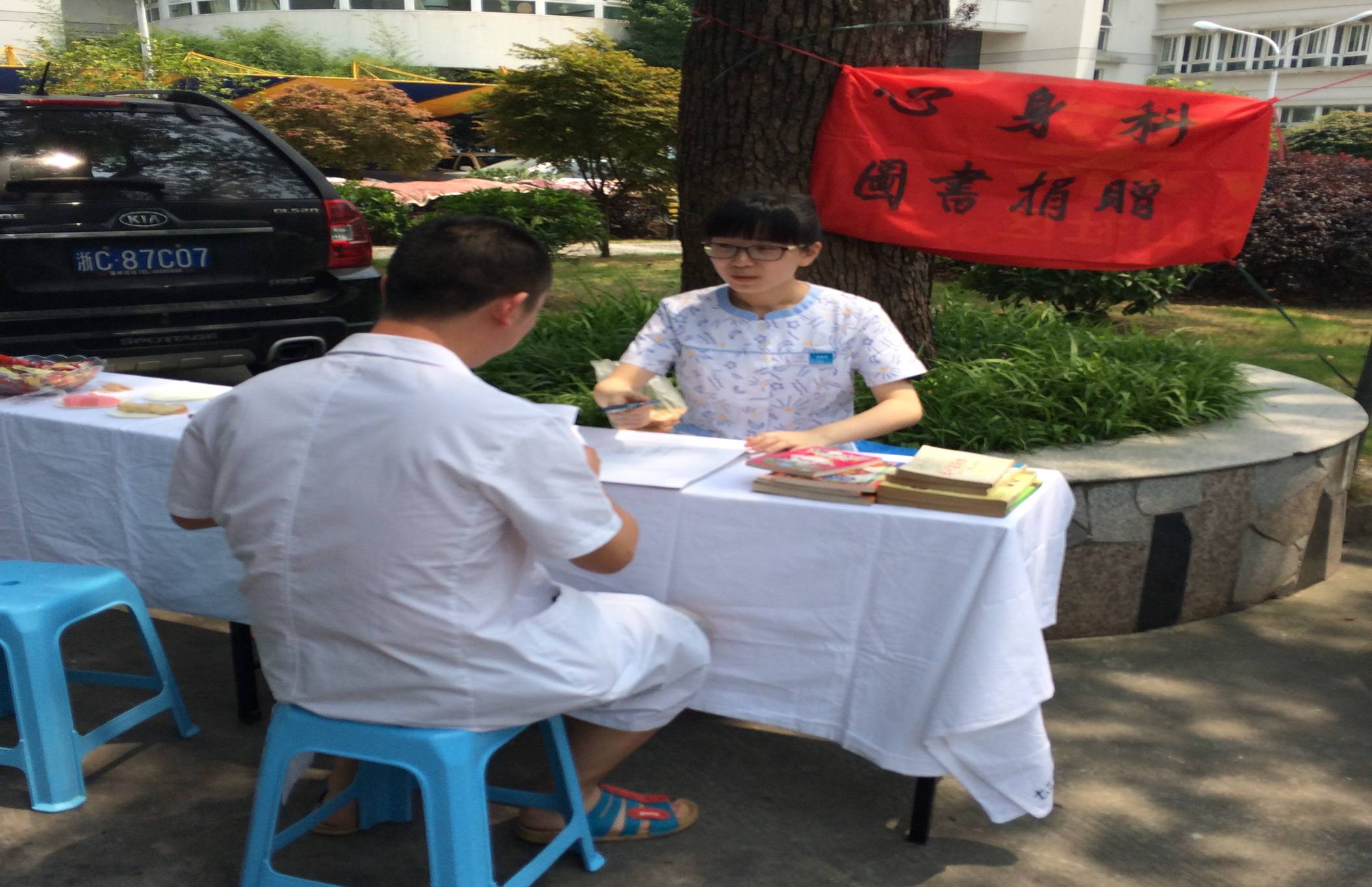 6月13上午,由心身科青年文明號發(fā)起的以“捐贈圖書、傳遞愛心”為主題的圖書捐贈活動在我院食堂門口的大榕樹下展開。