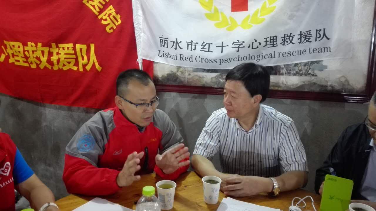 下午16:30,與麗水市心理援助隊(duì)在北界鎮(zhèn)災(zāi)民安置點(diǎn)順利匯合。在安置點(diǎn),我院心理救援隊(duì)受到了麗水市紅十字會(huì)黨組書記蔡成俊同志的熱誠(chéng)歡迎,他對(duì)我院心理救援隊(duì)成員放棄國(guó)慶休假趕赴麗水災(zāi)區(qū)開展心理危機(jī)干預(yù)工作表達(dá)了感激之情。隨后,我院心理救援隊(duì)成員與麗水市相關(guān)單位的心理救援工作人員進(jìn)行工作交接。