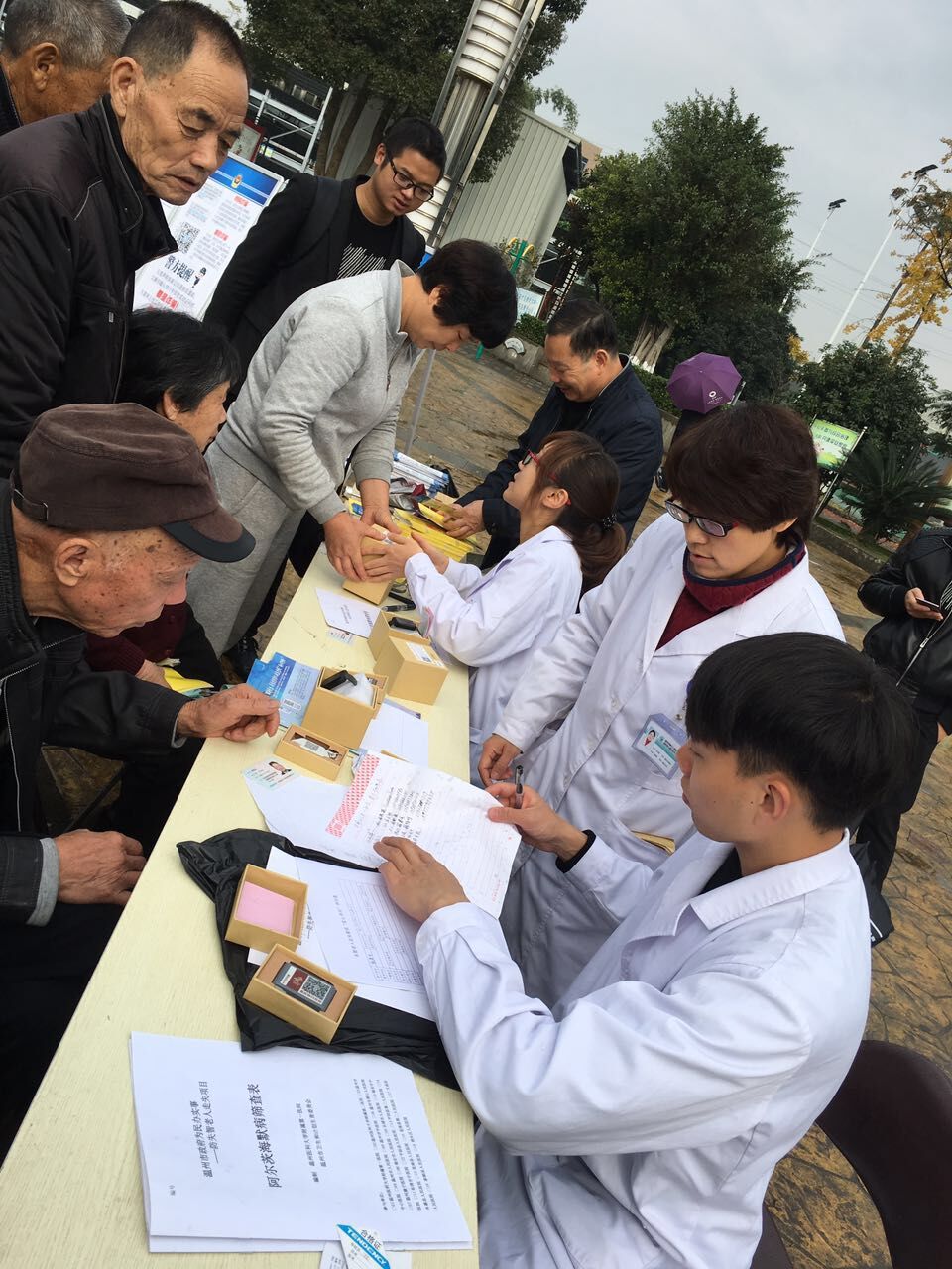 義診隊(duì)伍到達(dá)時(shí),活動(dòng)現(xiàn)場(chǎng)早早的聚滿(mǎn)了等待的老人和家屬。我們的醫(yī)護(hù)人員各自分工,有序合作,為社區(qū)老人開(kāi)展心理健康知識(shí)講座,為他們測(cè)量血壓、血糖,進(jìn)行記憶篩查。對(duì)符合條件的老人,免費(fèi)申領(lǐng)“安心手環(huán)”,為其老人及家屬建立信息檔案,并進(jìn)行使用指導(dǎo)。義診的一個(gè)上午,血壓、血糖測(cè)量達(dá)100余人,現(xiàn)場(chǎng)篩查人數(shù)高達(dá)100人次,發(fā)放并登記安心手環(huán)18只。在“安心行動(dòng)”的路上,我們又邁進(jìn)了一大步。