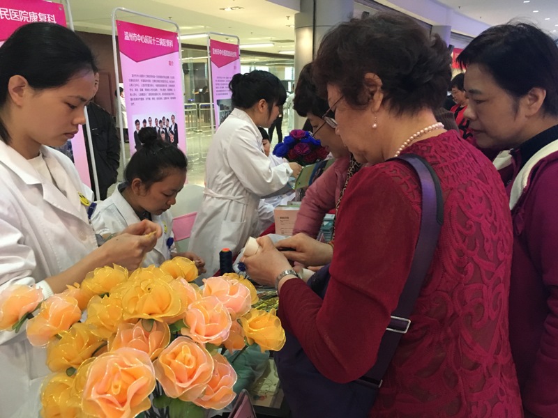 ?為響應(yīng)溫州市巾幗文明崗創(chuàng)建的“惠民暖心 最美服務(wù)” 主題實(shí)踐活動(dòng),我院康復(fù)科于3月8日早上8:30在溫州市婦女兒童活動(dòng)中心一樓開展了慶祝國際婦女節(jié)和關(guān)注精神健康的主題宣教的相應(yīng)活動(dòng)。