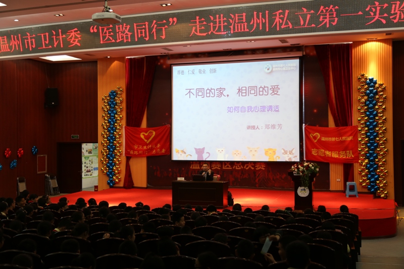 帶著這些疑問,4月22日上午,由市衛(wèi)計(jì)委聯(lián)合《溫州日報(bào)》共同推出的“醫(yī)路同行”校園季最終站——溫州市第七人民醫(yī)院專場走進(jìn)了溫州私立第一實(shí)驗(yàn)學(xué)校。圍繞“不同的家,相同的愛”這一主題,與該校六年級段近260名師生就“自我調(diào)適”問題進(jìn)行了專題互動講座。