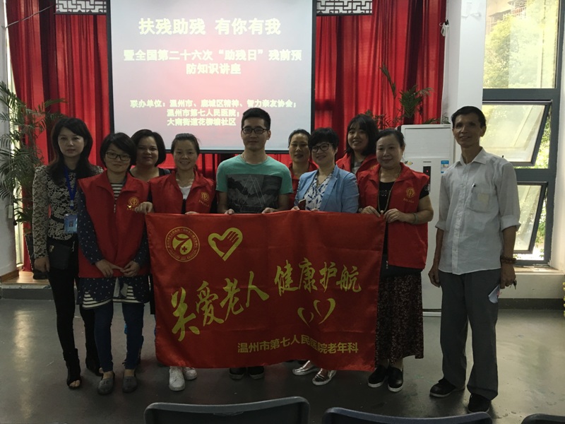 為迎接全國第二十六個“助殘日”,5月18日上午,我院聯(lián)合鹿城區(qū)精神、智力親友協(xié)會,在大南街道花柳塘社區(qū)開展殘前預(yù)防知識講座,共有130多名殘疾人及家屬、助殘志愿者在花柳塘社區(qū)活動中心多功能廳參加此次講座,講座由我院老年科護士長陳建敏主講。