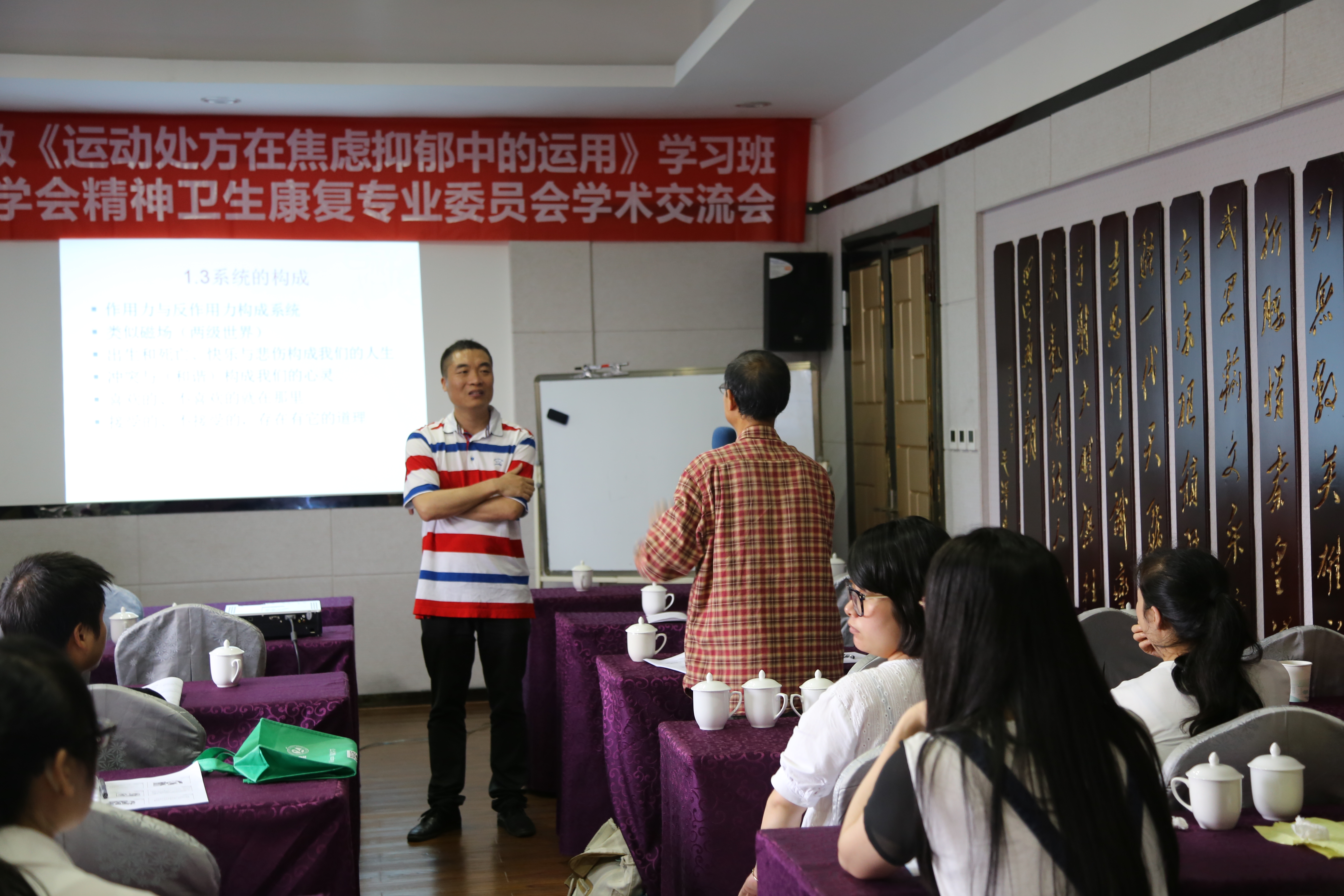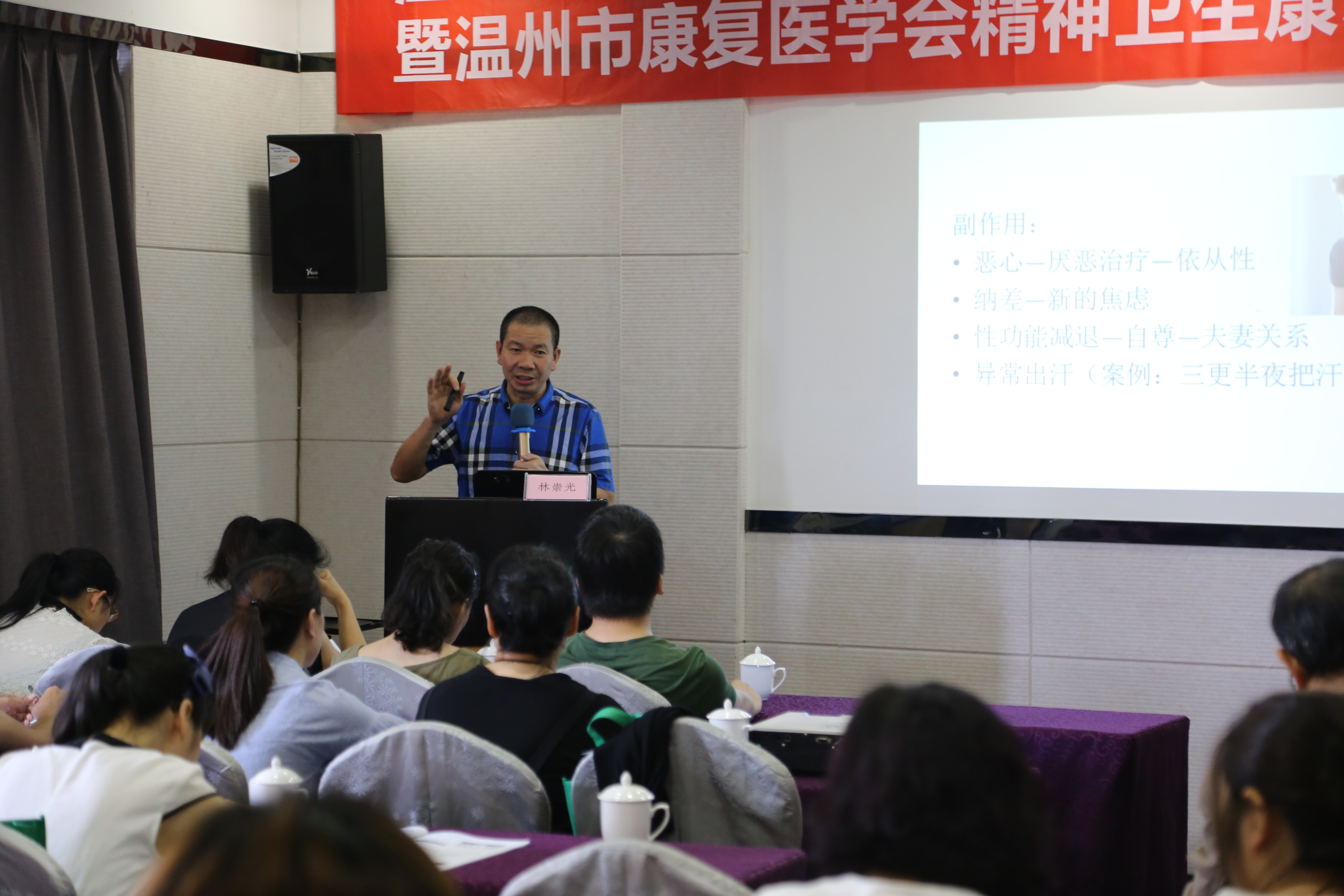 ? ? ?另外,浙江省康復醫(yī)學會精神康復專業(yè)委員會委員鄭維芳、溫州市康復醫(yī)學會精神康復委員張偉、以及溫州市健康教育協(xié)會學校心理健康教育專業(yè)委員會委員陳策就當下焦慮抑郁疾病的屬性以及在家庭環(huán)境、青少年各期的表現(xiàn)形態(tài)、治療特點和運動處方與常規(guī)治療結合方案等為在場學員做了詳細的講解,大家都表示受益匪淺。