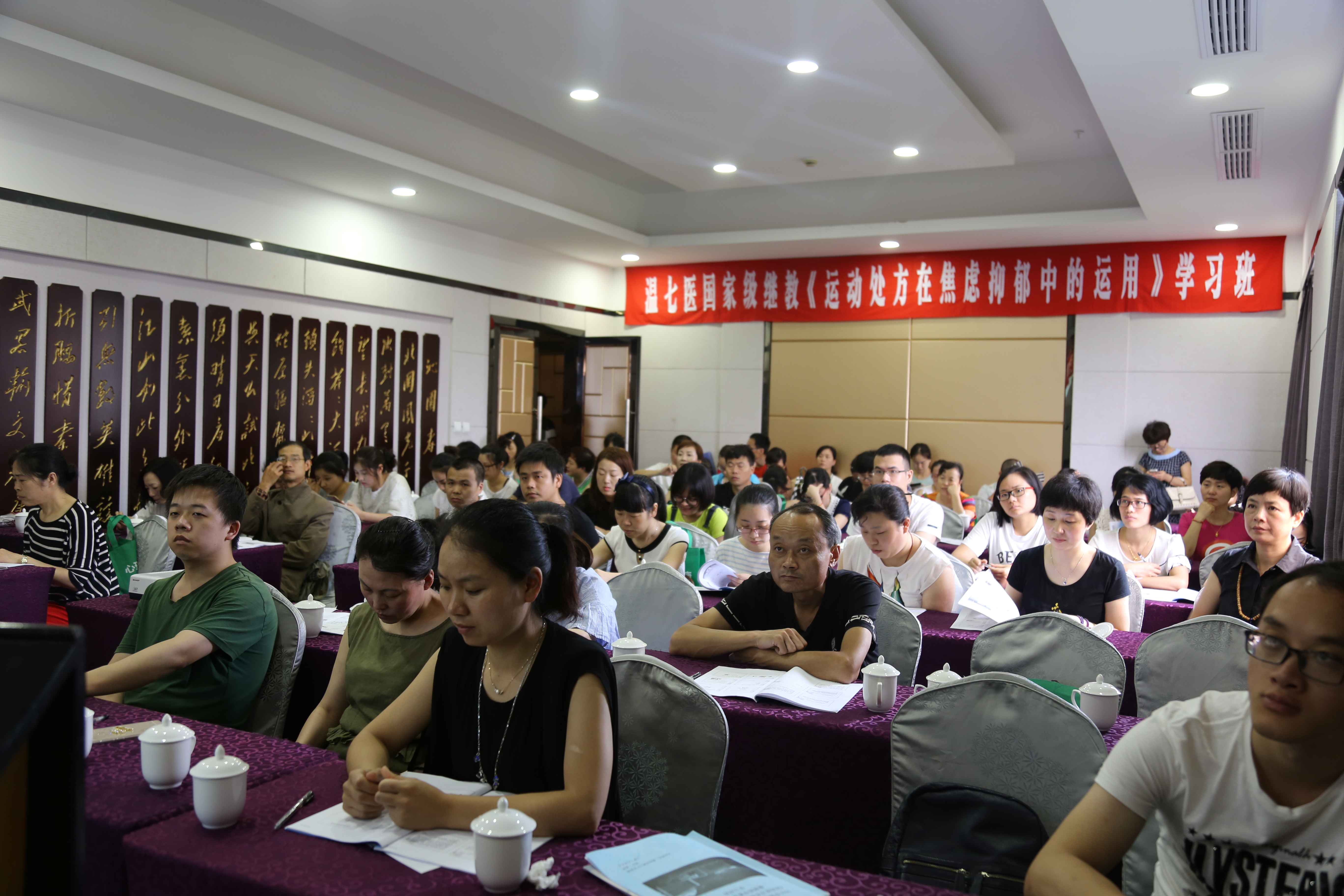 現(xiàn)場氣氛熱烈,座無虛席,因場地限制無法增加座位,一部分學員仍堅持站在后排聽課