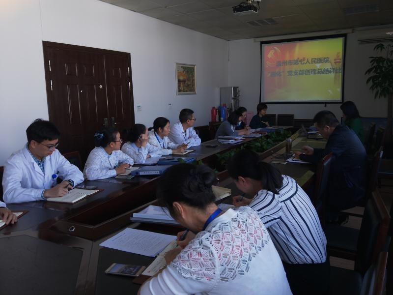 會(huì)上,首先各支部依次匯報(bào)了本支部是如何開(kāi)展以陣地標(biāo)準(zhǔn)化、活動(dòng)制度化、工作規(guī)范化、服務(wù)常態(tài)化為主要內(nèi)容的“四化”黨支部創(chuàng)建活動(dòng)。接著每個(gè)支部相互交流查看了各支部的創(chuàng)建臺(tái)賬。匯報(bào)中發(fā)現(xiàn),通過(guò)“四化”黨支部創(chuàng)建活動(dòng),使黨支部在工作規(guī)范上有新進(jìn)展、工作活力上有新提升、服務(wù)發(fā)展上有新成效,有效提升黨員活動(dòng)的保障性、黨內(nèi)生活的嚴(yán)肅性、黨建工作的實(shí)效性。比如醫(yī)技支部、后勤支部、臨床二支部等的助推“最多跑一次”主題黨日活動(dòng),支部黨員們集思廣益,梳理了十幾條就診辦事流程,大大方便了患者和家屬。實(shí)現(xiàn)了黨建和業(yè)務(wù)工作目標(biāo)同步,有機(jī)結(jié)合。十月份的主題黨日各支部都按照《溫州市主題黨日活動(dòng)指導(dǎo)書(shū)》的六規(guī)范要求,做的有聲有色,內(nèi)容豐富,取得很好的實(shí)效。胡立榮書(shū)記還就黨員應(yīng)知應(yīng)會(huì)題目現(xiàn)場(chǎng)抽查了各位支委會(huì)成員,并語(yǔ)重心長(zhǎng)的強(qiáng)調(diào)作為黨務(wù)干部做好黨建工作的重要性和使命感。