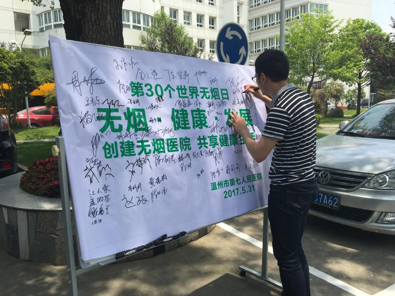 市七醫(yī)作為一家省級健康促進醫(yī)院,一直以來積極開展禁煙工作,創(chuàng)建無煙醫(yī)院。為增強員工禁煙意識,在第30個世界無煙日到來之際,防治科在醫(yī)院食堂門口進行了禁煙宣傳簽字活動,全院職工積極響應(yīng),反響熱烈,共有100余人參與簽名。?