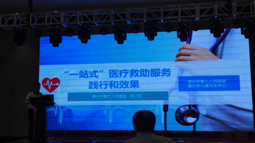 研討會上,浙江省醫(yī)院協(xié)會精神病醫(yī)院管理分會主任委員柴可群作重要講話,臺州市衛(wèi)生計生委、臺州市第二人民醫(yī)院等相關領導致辭并講話。溫州市第七人民醫(yī)院院長林小東圍繞我院《“一站式”醫(yī)療救助服務的踐行和效果》學術研究課題,作細致、生動的內(nèi)容介紹和展示。林小東院長通過PPT展示,就“一站式”服務模式的運作背景、“一站式”服務模式的現(xiàn)實效果和“一站式”服務模式的發(fā)展趨勢等三方面內(nèi)容進行詳細介紹。