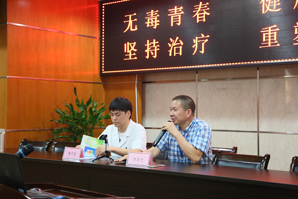 ?團(tuán)輔現(xiàn)場(chǎng),還向?qū)W員們發(fā)放了禁毒宣傳資料,并宣傳新的戒毒治療模式,包括生理脫毒,心理脫毒,身體機(jī)能恢復(fù)的運(yùn)動(dòng)治療,穴位儀器治療等。