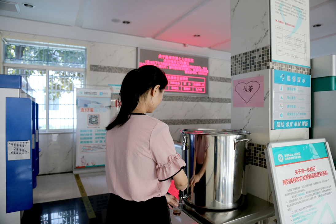 除“消暑愛(ài)心驛站”外,導(dǎo)醫(yī)臺(tái)還無(wú)償提供使用針線、創(chuàng)口貼、棉花簽、老花鏡等物品,醫(yī)院大廳導(dǎo)醫(yī)臺(tái)處還配置手機(jī)充電器、飲水機(jī)等設(shè)備方便群眾使用。今年以來(lái),該院針對(duì)行動(dòng)不便的患者,導(dǎo)醫(yī)臺(tái)還會(huì)提供輪椅,護(hù)送患者去病區(qū),用實(shí)際行動(dòng)踐行“用心關(guān)懷,用心呵護(hù)”這一服務(wù)理念。據(jù)悉,該院各大病區(qū)還為1200多名患者提供免費(fèi)的伏茶、綠豆湯等消暑食品。?