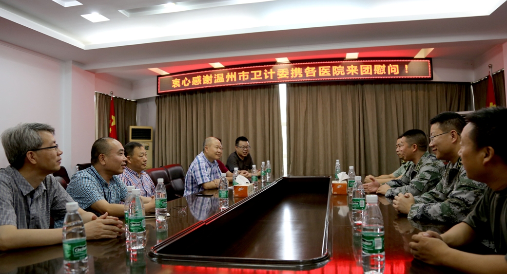 今天是“八一”建軍節(jié)。7月31日下午,市衛(wèi)計委黨委副書記、副主任徐斌帶隊,攜溫州市第七人民醫(yī)院等5家市級直屬醫(yī)院的分管領導一行,前往浙江陸軍預備役步兵師第一團,親切看望駐溫部隊官兵,并向他們致以節(jié)日的問候。慰問當天召開了簡短的座談會,與會人員歡聚暢談,共慶建軍節(jié),共敘軍地情誼。浙江陸軍預備役步兵師第一團相關負責人詳細介紹目前第一團的基本情況,并表示第一團將始終牢記“為民服務”的根本宗旨,積極參與到溫州各項建設中去,把“人民軍隊愛人民”這個窗口形象樹起來,把“愛我人民愛我軍”這個血脈深情延續(xù)好,與時俱進鞏固發(fā)展好軍政軍民關系。