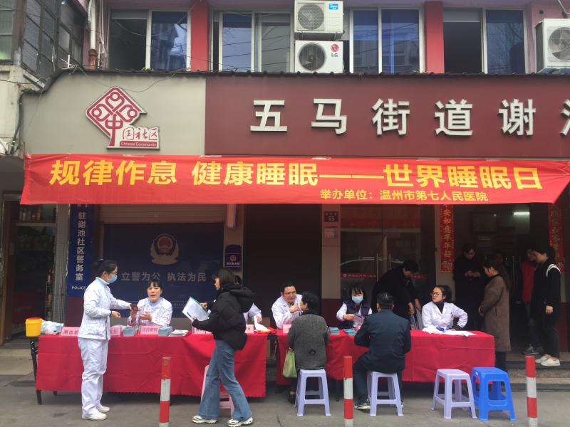 ?? ?如今人們的生活、工作節(jié)奏不斷加快,隨之而來的壓力也與日俱增,你是否已經(jīng)察覺到身體傳來的健康警告?如健忘、衰老、肥胖、高血壓或者更年期綜合癥以及抑郁、焦慮障礙等。引起這些癥狀的主要原因很可能就是你缺乏健康的睡眠和規(guī)律的作息習(xí)慣。醫(yī)學(xué)研究表明睡眠障礙嚴(yán)重影響了中國各年齡階段人群的精神心理健康狀況,增加了心腦血管疾病的發(fā)病率,從而降低了人們的生活水平質(zhì)量。值此第18個“世界睡眠日”之際,溫州市第七人民醫(yī)院以規(guī)律作息 健康睡眠為主題,在五馬街道謝池社區(qū)和市七醫(yī)門診分別開展了相關(guān)活動,希望可以為睡眠障礙患者提供幫助。