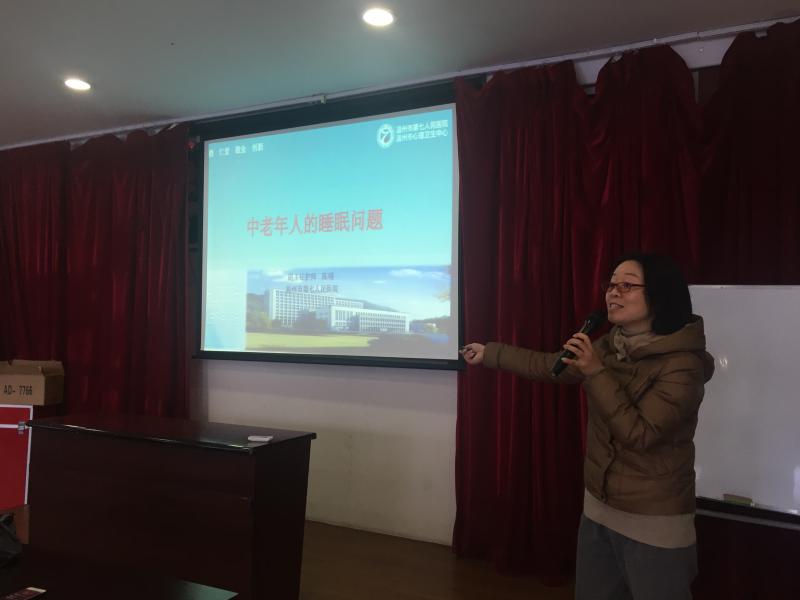 ?? ?3月21日早上9時許,溫州市第七人民醫(yī)院黨辦主任陳靖來到謝池社區(qū),為社區(qū)內(nèi)失眠癥患者帶來了一場“中老年睡眠科普知識講座”,現(xiàn)場聽課人數(shù)達40人。由于來聽講座的都是社區(qū)里的中老年朋友,所以陳靖主任以地道的溫州話進行講課,迅速和她們拉近了距離,耐心地講解了現(xiàn)在中老年朋友失眠癥的癥狀、引起該癥的原因、失眠的危害和相關(guān)防治措施。社區(qū)主任在聽完講座后表示自己最近也深受失眠困擾,陳靖主任的講課確實讓她獲益匪淺。陳靖主任建議如果失眠癥嚴(yán)重影響到了日常生活,那就需要盡快到專科醫(yī)院進行檢查或者做相關(guān)的心理咨詢。在社區(qū)里與講座同步開展的還有免費義診活動,我院主任醫(yī)師徐道祥、于明榮、心理咨詢師謝展翔及病區(qū)護士早早地整理好義診攤位,為前來咨詢的朋友答疑解惑。據(jù)統(tǒng)計,現(xiàn)場來測血糖、血壓人數(shù)達90余人次;發(fā)放左金丸、午時茶、板藍根等常備藥品350余盒;發(fā)放睡眠科普知識宣傳手冊500余份。