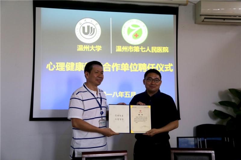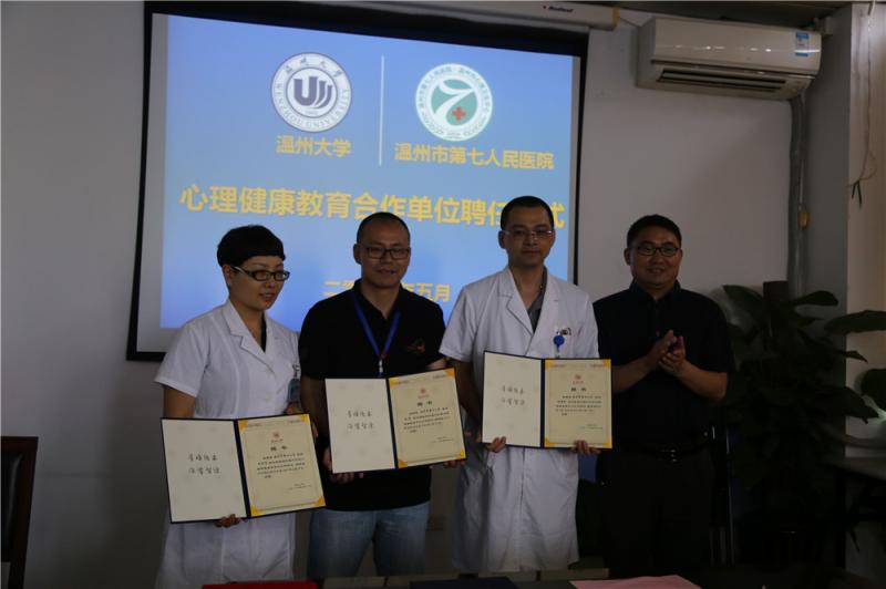 ? 溫州大學聘請了溫州市第七人民醫(yī)院院長林小東、副院長林崇光、副院長張偉為溫州大學心理健康教育中心工作顧問,聘請溫州市第七人民醫(yī)院醫(yī)務科陳策科長、洪滬津醫(yī)師、陳浩然醫(yī)師為溫大心理健康教育工作校外專家。根據(jù)溫大的需求,市七醫(yī)將派遣專業(yè)醫(yī)生提供精神衛(wèi)生工作指導,開設專題講座;為有心理危機或疑似精神疾病的學生提供專業(yè)幫助及建議;為溫大在讀并在市七醫(yī)治療登記過的各類精神障礙的學生建檔,提供動態(tài)監(jiān)護,保持與校方及家屬的信息溝通;接受溫大老師心理學進修學習等等服務。