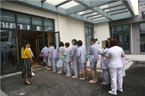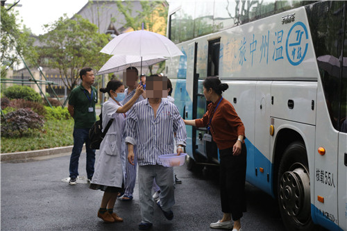 還有,住院大樓門口,護士們逐一核對病人人數(shù),并以10個人為小單位,清點核對人員,確保病人如數(shù)安全入駐病房。