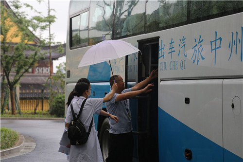 你瞧,醫(yī)院領導、醫(yī)護人員、安保人員已經(jīng)排成了一列小縱隊,就像一隊“迎賓人員”等候著病人。還有,更令人感動的是我們的醫(yī)護人員,早早得打起雨傘,等候著下車病人,一個一個撐著雨傘接送至住院大樓。