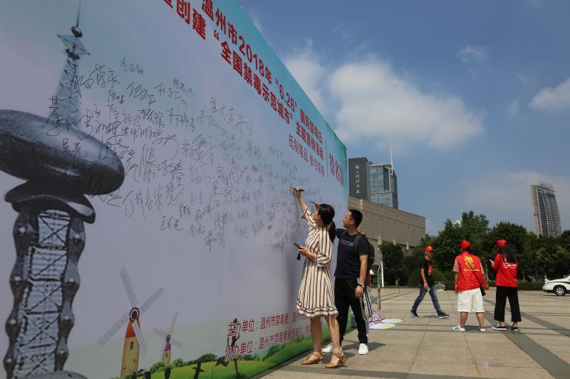 “6.26”是國際禁毒日,6月26日上午,溫州市戒毒中心聯(lián)合市、區(qū)相關(guān)部門,在世紀廣場和楊府山公園啟動宣傳活動,并通過擺攤設(shè)點、現(xiàn)場咨詢、送醫(yī)送藥等便民服務(wù)內(nèi)容,圍繞“健康人生、綠色無毒、珍惜生命、遠離毒品”的主題向過往群眾宣傳禁毒知識。