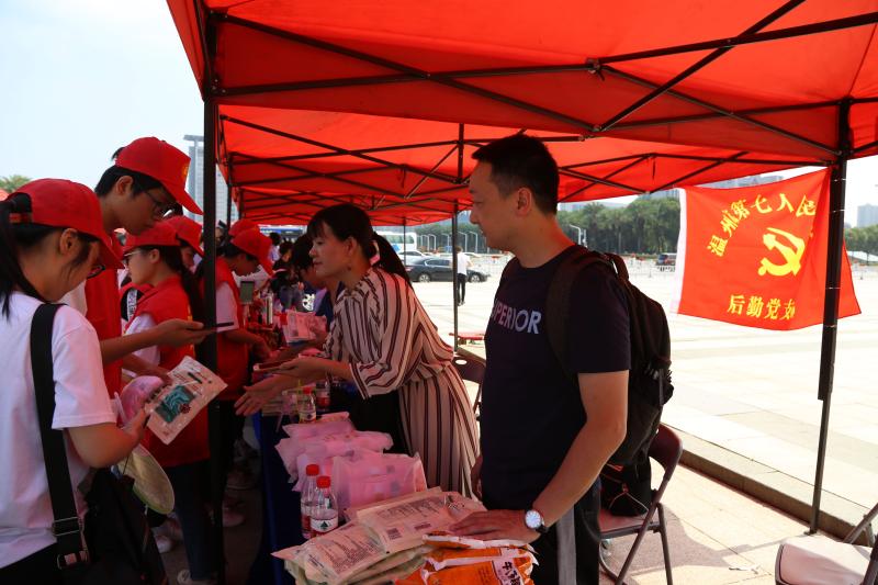 ?? 在兩個現(xiàn)場活動點,溫州市戒毒中心工作人員通過懸掛橫幅、擺放禁毒展板、設(shè)立咨詢臺、發(fā)放進家庭宣傳讀本和小禮品等形式向廣大人民群眾介紹毒品的危害以及禁毒相關(guān)法律法規(guī),使廣大人民群眾進一步了解了毒品對個人、對家庭、對社會的危害,切實提高大家防毒、拒毒、識毒意識。在免費發(fā)放解暑藥品的攤位前,許多市民駐足了解禁毒知識并領(lǐng)取小禮品,醫(yī)務(wù)人員還開展了免費測量血壓等便民服務(wù)。