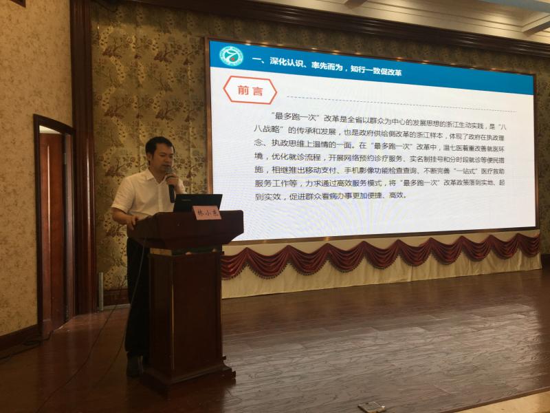 溫州市第七人民醫(yī)院作為溫州市本級直屬的唯一一家公立三級精神??漆t(yī)院,由院長林小東圍繞改革熱點(diǎn)就《“加速度”換“滿意度”——溫七醫(yī)推進(jìn)“最多跑一次”改革的實(shí)踐與思考》為主題,在大會上與到場嘉賓進(jìn)行了交流。