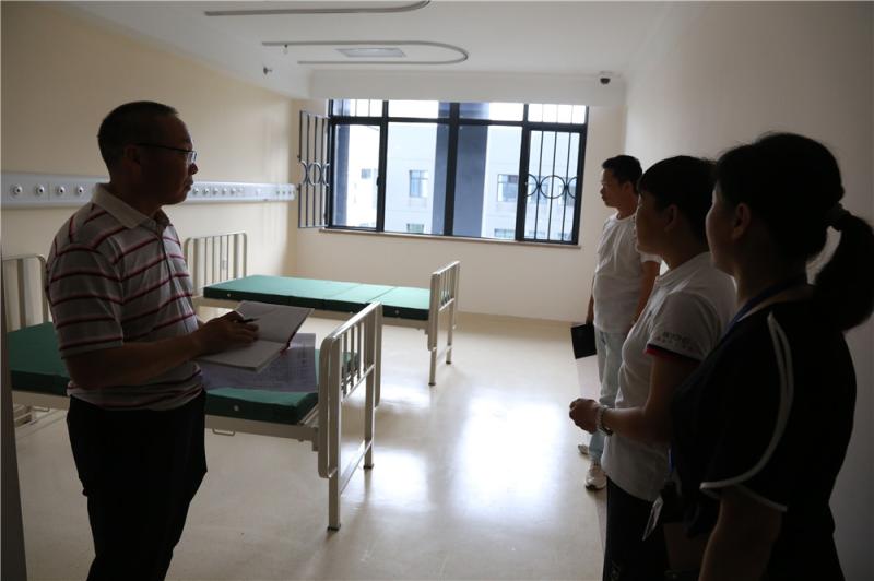 “我們醫(yī)院正在籌劃建設(shè)一所新醫(yī)院,想來同行并有成功經(jīng)驗的建設(shè)院區(qū)取經(jīng),取其精華去其糟粕。”吳永勝在隨后查看新院區(qū)過程中邊走訪邊了解。期間,一行人從醫(yī)院大樓的層高設(shè)計,防水漏水計劃,細微到門把手、門鎖、配電間、吸煙區(qū),甚至是廁所的地板、門、鎖設(shè)計等詳細進行了解。姜德國、方春霞邊陪同檢查,邊將我院建設(shè)過程中的經(jīng)驗、困難,以及建設(shè)過程中的重點注意事項進行詳細介紹。