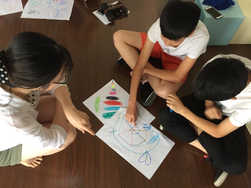 繪畫(huà)治療是通過(guò)繪畫(huà)的方式去投射出自己內(nèi)心中潛意識(shí)的想法。在場(chǎng)的孩子們?cè)谛睦碜稍?xún)師的指導(dǎo)下,都用自己的非慣用手進(jìn)行繪畫(huà),感受那種不受控制的神奇感覺(jué),然后再在別人的畫(huà)中添加一筆,慢慢的,原本自己?jiǎn)握{(diào)的畫(huà)作開(kāi)始充實(shí)起來(lái)。最后心理咨詢(xún)師讓同學(xué)們?cè)诋?huà)中尋找美好的東西。孩子們通過(guò)這個(gè)活動(dòng)可以從中明白生活有時(shí)候會(huì)有很多的干擾因素,比如“非慣用手”、“別人添加的圖案”,所以生活不可能總是我們理想中的樣子,我們應(yīng)該努力去發(fā)現(xiàn)生活中那些美好的事物。