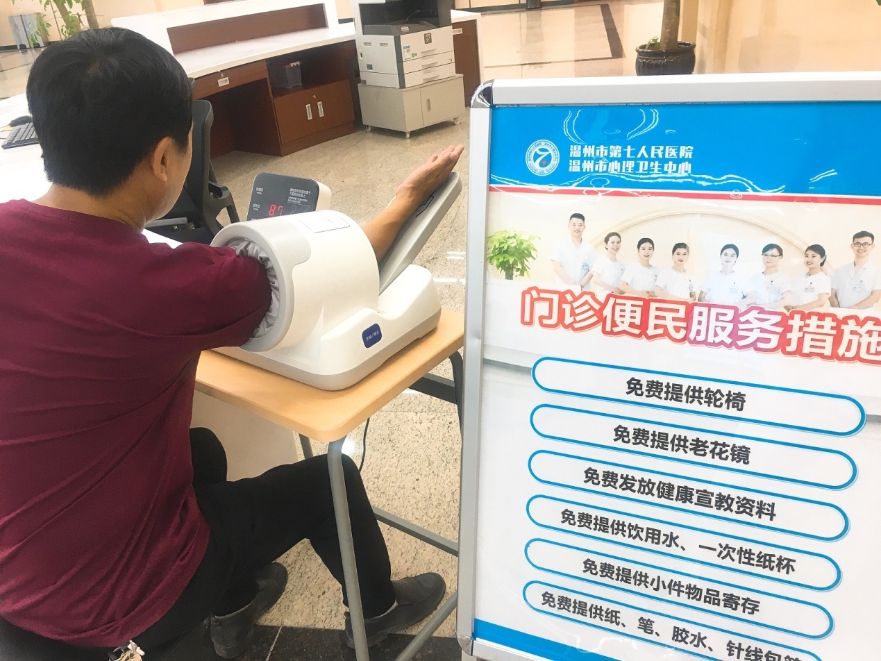 ?大廳有方便病人等待班車的長(zhǎng)椅,服務(wù)中心還提供各種便民服務(wù)措施,例如提供輪椅、一次性水杯、測(cè)量血壓、提供證件復(fù)印、手機(jī)充電等,體現(xiàn)了我們“用心呵護(hù),用心關(guān)懷”的服務(wù)理念。