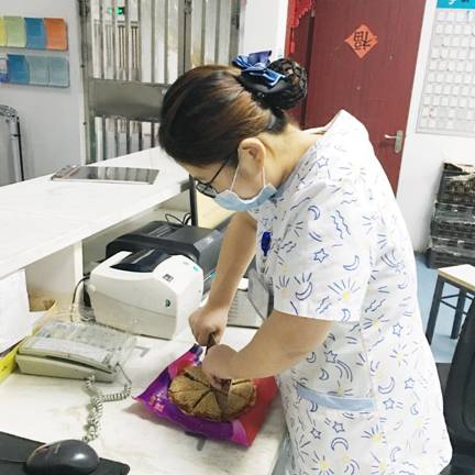 ? ? ?本以為這是一次正常的家屬探望過程,但沒過一會,患者與家屬迎面向我們走來,臉上洋溢著笑容,說道:“中秋節(jié)就要到臨了,這是我們廠里自己做的月餅,我想將它分給其他病人,讓他們也感受到節(jié)日的暖意,也好表達我們病友之間的情感?!弊o士連忙接過,并招呼和組織患者共同分享這份“情意”。中秋來了,思念“月”濃,團圓的心情“月”急切,也“月”想著吃月餅。患者們個個也都被這突如其來的驚喜樂開了懷。