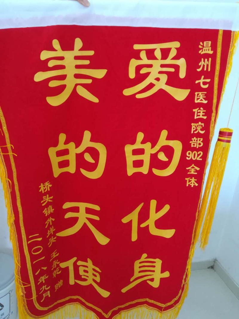 ? ? ?“愛的化身,美的天使”,錦旗上黃燦燦的大字,是給醫(yī)院的鼓勵,更是醫(yī)務(wù)人員的動力。