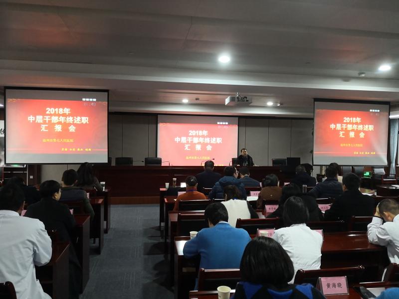 為客觀地評(píng)價(jià)中層干部在過去一年的德表現(xiàn)和工作實(shí)績(jī),加強(qiáng)對(duì)中層干部的考核監(jiān)督力度,并研究部署新一年的工作重點(diǎn)和任務(wù)我院于2019年1月10日、11日在潘橋院區(qū)門診樓4樓1號(hào)會(huì)議室舉行了2018年度中層干部年度考核述職報(bào)告會(huì)。報(bào)告會(huì)分為職能科組非職能科組進(jìn)行,全體中層干部共80余人參加了會(huì)議,書記徐象平、院長(zhǎng)林小東等全體院領(lǐng)導(dǎo)班子聽取述職。