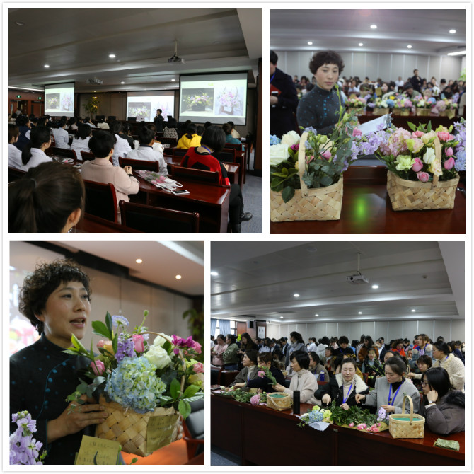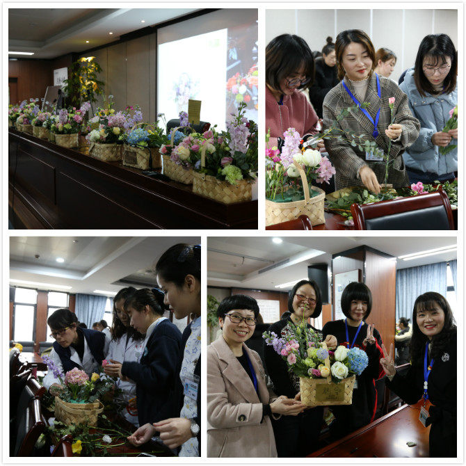 ?? 3月7日下午,為了慶祝國(guó)際婦女節(jié),溫州市第七人民醫(yī)院工會(huì)舉辦的花藝技巧培訓(xùn)與插花比賽。本次活動(dòng)特別邀請(qǐng)了中國(guó)插花高級(jí)講師、國(guó)家花藝技師謝旭女士授課,150余名女職工參加培訓(xùn),參賽隊(duì)伍達(dá)30支。