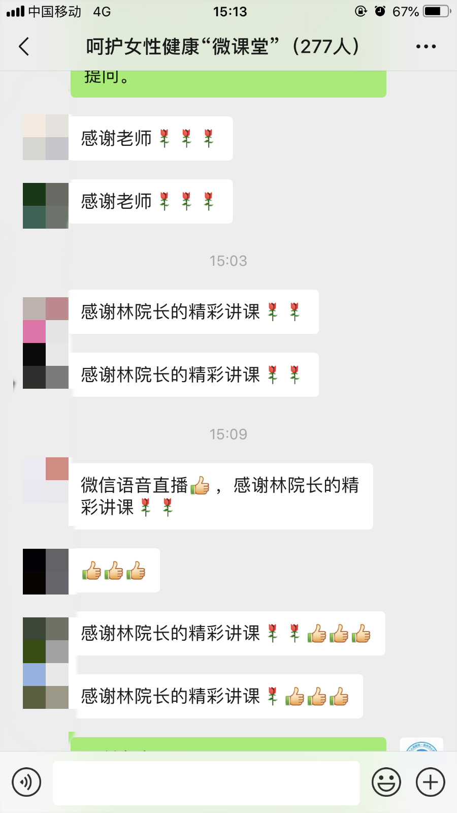 ??? 微信目前已經(jīng)成為人們?nèi)粘I钪胁豢扇鄙俚囊徊糠?,作為社交類手機應(yīng)用,其互動性、及時性及多樣性的特點豐富了人們的日常溝通方式。我院本次“Q心理微課堂”不僅拉近和市民之間的關(guān)系,也使得傳遞健康的理念及生活方式更直接。本次微課結(jié)束后有市民發(fā)送至“微課小助手”表示:“微課很方便,什么時候聽都可以,下午正好是上班時間,我就下班后晚上在家慢慢聽。林醫(yī)生的講課很精彩,希望以后還有類似的講課,也希望你們醫(yī)院越辦越好?!?