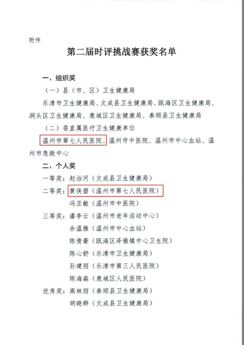 ??? 從市衛(wèi)健委第二屆屆時評挑戰(zhàn)賽結(jié)果通報傳來喜報,市七醫(yī)時評挑戰(zhàn)賽7人參賽隊在本次比賽中獲得了“團體組織獎”稱號,同時參賽組員1位獲得個人二等獎,3位獲得個人優(yōu)秀獎的優(yōu)異成績。