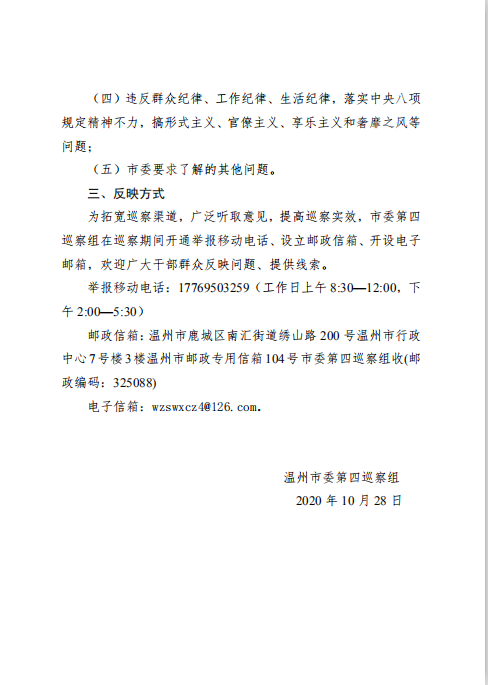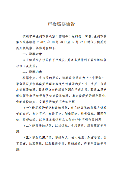 市委巡察通告