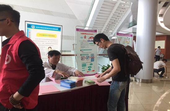 門診醫(yī)生在發(fā)放宣傳資料