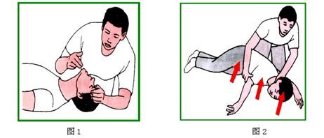 ????開放氣道以保持呼吸道通暢,這是心肺復蘇成功與否的關鍵第一步。首先查看病人口中有無食物、嘔吐物、假牙等異物(如圖1),然后置病人為側臥位或平臥,將頭部側向一邊(如圖2)。急救者一手固定舌頭前端使其勿向后傾,若有異物可用另一手的末指或中指深入其口中,將這些異物清除干凈。????????????????????