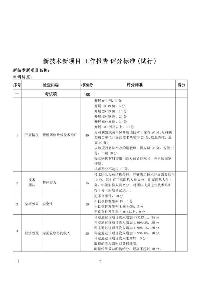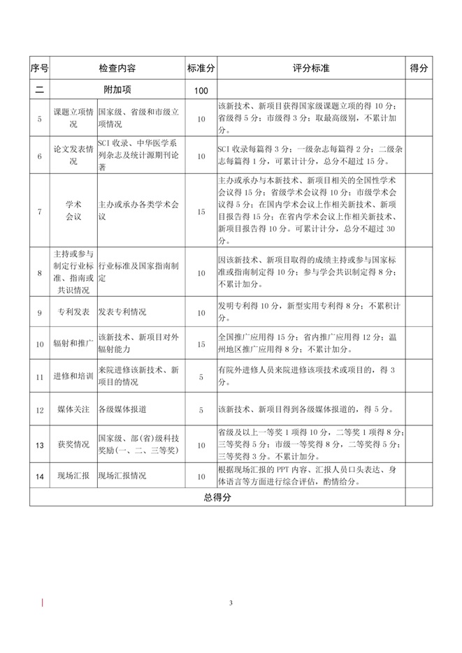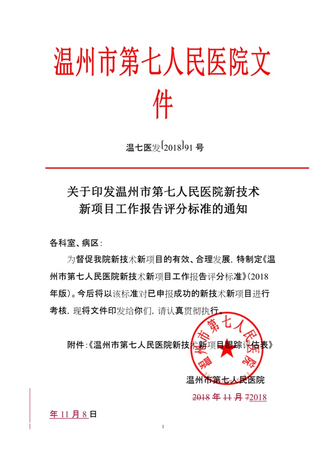 關于印發(fā)溫州市第七人民醫(yī)院新技術新項目工作報告評分標準的通知