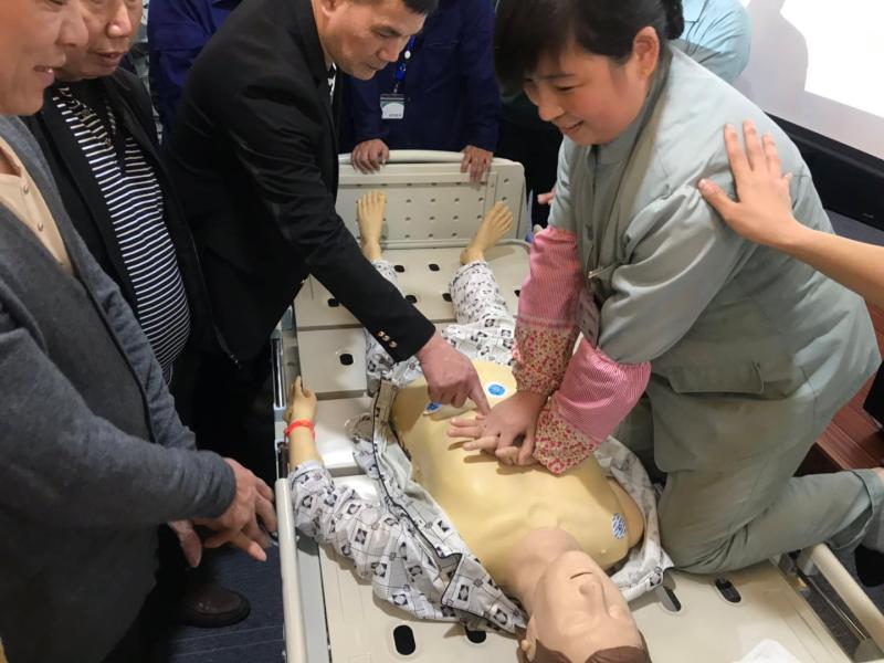 ??? 隨后,張崇麗就如何掌握心肺復(fù)蘇技術(shù)的操作要點及注意事項進行了細致講解,并由朱愛珍護士長對“模擬人”進行心臟復(fù)蘇演示,包括判斷是否喪失意識、有無自主呼吸、有無脈搏,并對胸外心臟按壓、清理口腔異物、開放氣道、人工呼吸等操作要領(lǐng)進行示范。心肺復(fù)蘇是一項基本急救技能,是每個人都應(yīng)該掌握的技能之一。在張崇麗和朱愛珍的現(xiàn)場點評和及時糾正不規(guī)范操作下,大家對心肺復(fù)蘇基本技能每一個急救環(huán)節(jié)都進行了模擬操作和反復(fù)練習(xí)。通過此次培訓(xùn),大家掌握了心肺復(fù)蘇急救要領(lǐng),急救反應(yīng)能力也得到了提高。
