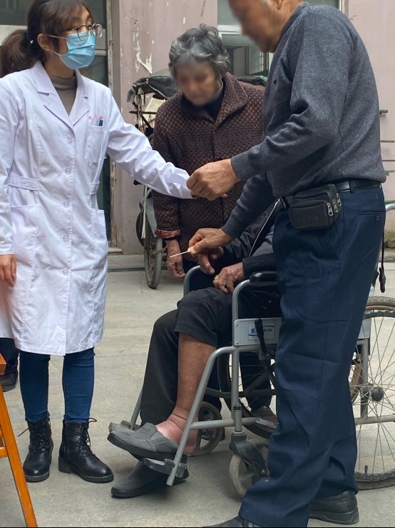 ?義診期間,在老人群中,一位90歲的阿公在家人的陪同下,推著輪椅過來,順勢下看,看到了阿公左下肢腫的像饅頭一樣,問其訴無意間就腫了,醫(yī)生查體后給予了對應(yīng)的簡單處理措施,指導(dǎo)早日就醫(yī),以免影響生命。