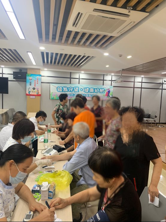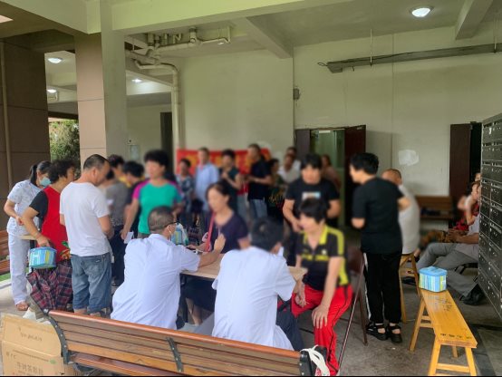 下午,“銀發(fā)守望”志愿者服務(wù)隊(duì)又前往梧田街道繼續(xù)開展義診活動(dòng),活動(dòng)現(xiàn)場(chǎng)早已有附近居民們?cè)诘却?,醫(yī)護(hù)人員一到現(xiàn)場(chǎng)便緊密鑼鼓開始為居民們測(cè)量血壓、血糖,解答居民們關(guān)心的健康問題。