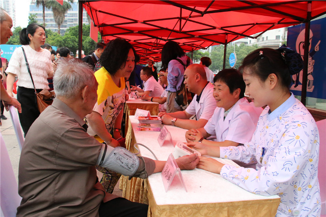 全市衛(wèi)生系統(tǒng)、各大醫(yī)院的專家醫(yī)生在廣場擺攤設(shè)點(diǎn),啟動(dòng)現(xiàn)場義診服務(wù)活動(dòng)。溫州市第七人民醫(yī)院由副院長姜德國、院長助理陳春棉帶隊(duì),臨床精神心理科主任醫(yī)師馬云芳、副主任醫(yī)師單建敏、老年科護(hù)士吳小苑等人組成的醫(yī)療團(tuán)隊(duì),參與“健康溫州行”義診服務(wù)活動(dòng)。在市七醫(yī)服務(wù)攤點(diǎn)前,居民排起了長長的隊(duì)伍,就自己關(guān)心的健康問題向?qū)<裔t(yī)生進(jìn)行咨詢,并得到了醫(yī)生的詳細(xì)解答、耐心服務(wù)。