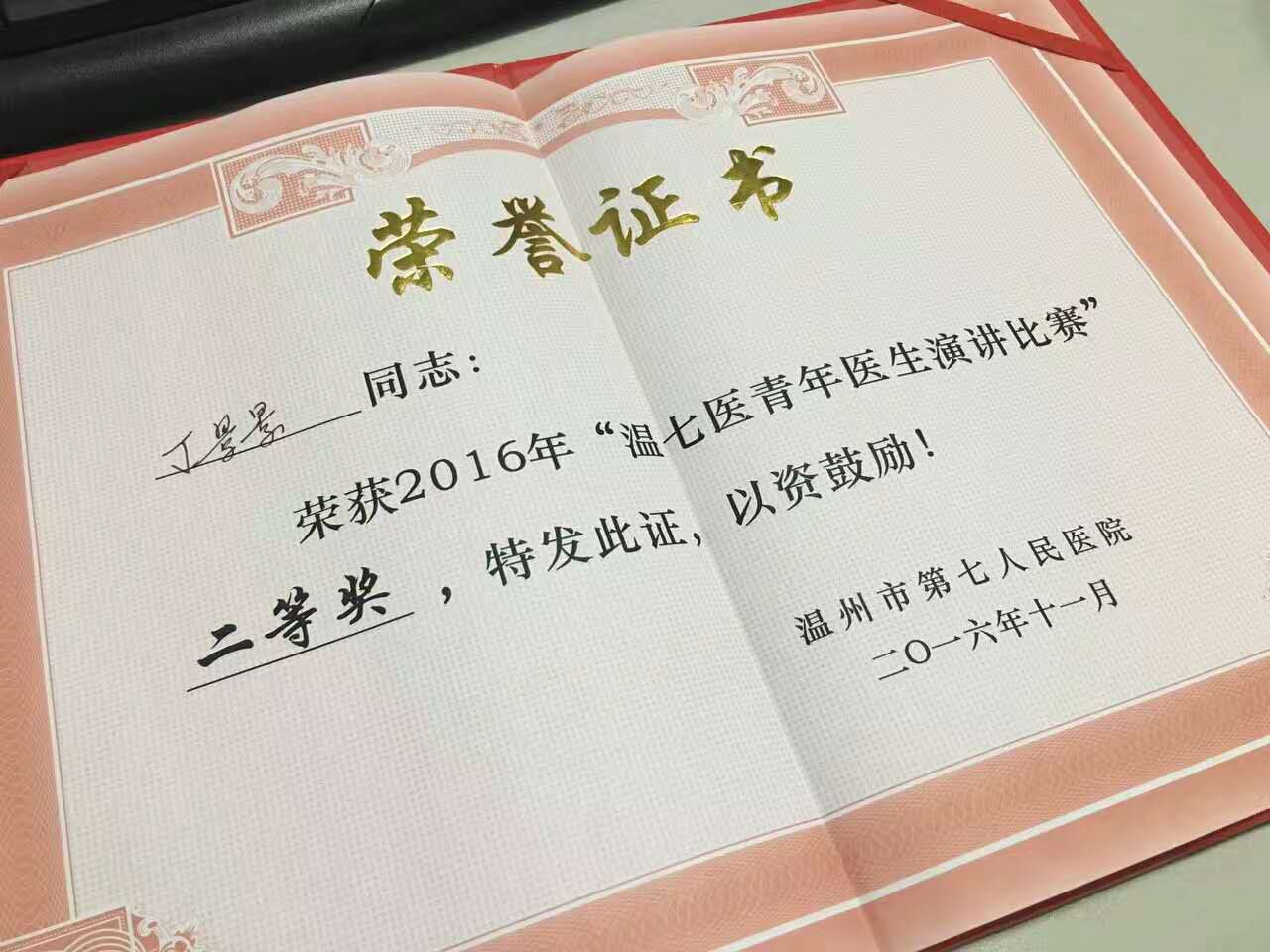 溫七醫(yī)青年比賽丁景景醫(yī)生榮獲二等獎(jiǎng)