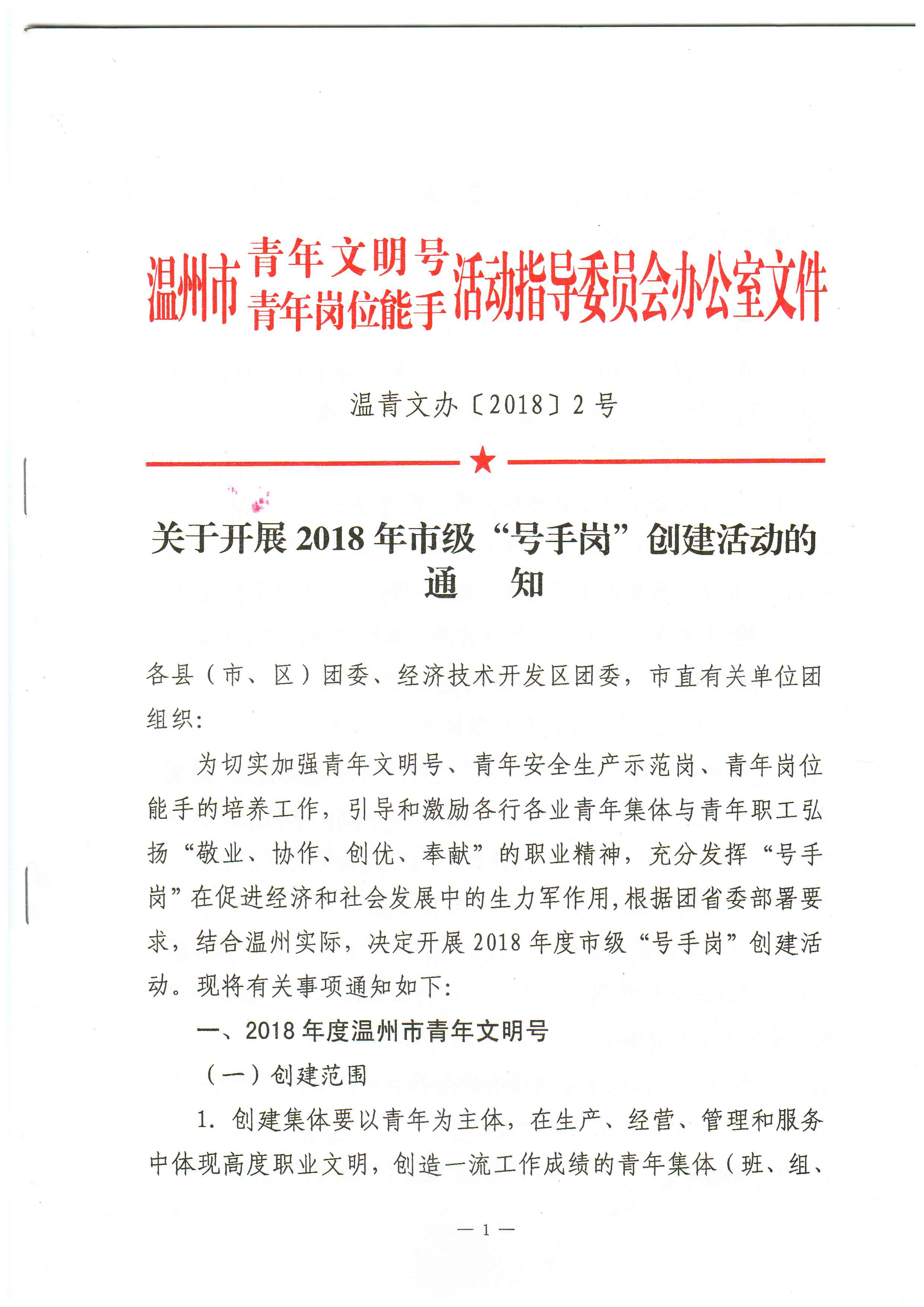 關(guān)于開展2018年市級“號手崗”創(chuàng)建活動的通知