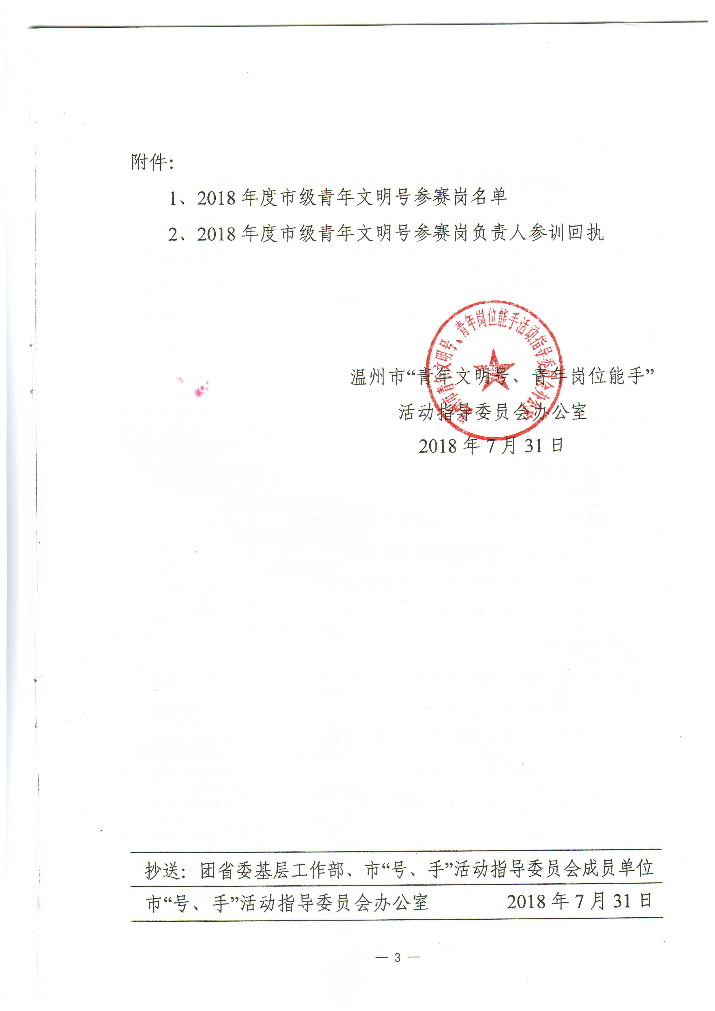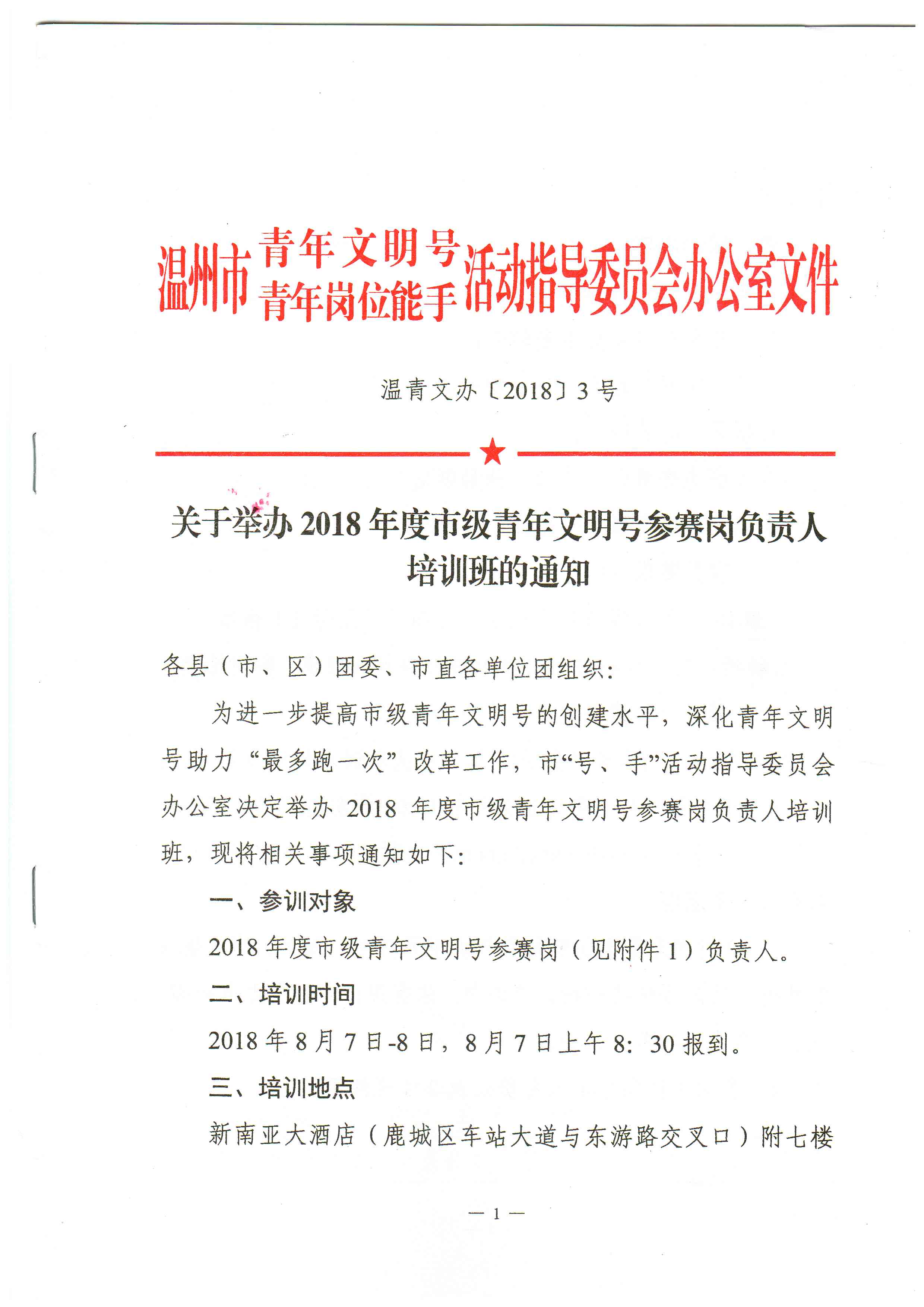 關(guān)于舉辦2018年度市級青年文明號參賽崗負責(zé)人培訓(xùn)班的通知