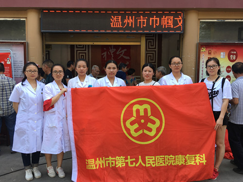 ??????????? 日前,龍灣區(qū)永中街道龍錦社區(qū)舉辦“惠民暖心 最美服務”基層義診活動,我院康復科“巾幗文明崗”志愿者們助力該項服務。
